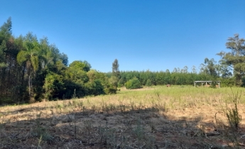 03ha com eucalipto, 02ha de acácia, potreiro com pastagem, roça com plantações diversificadas: feijão, milho, mandioca... e uma parte com árvores nativas.
